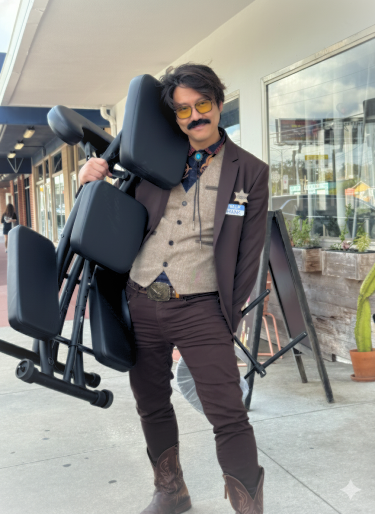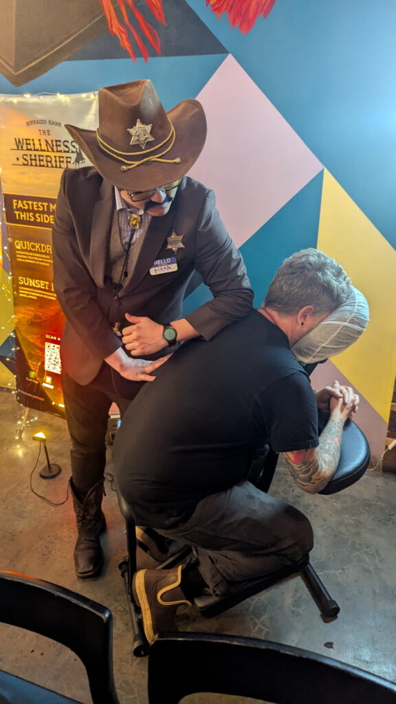 Fastest Massage this side of Eola, but Hokkaido Hank takes it slow. With over 7 years as a licensed massage therapist, this isn’t Hanks first rodeo taming tensions. Come see the Wellness Sheriff for a quick escape, it’ll make your day!! First time at Celebrate Lunar and he’s happy to serve you!